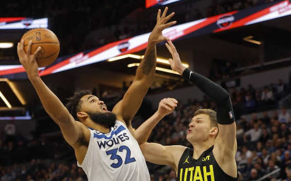 篮球直播吧12月1日讯 NBA常规赛,主场作战的明尼苏达森林狼以101-90击败犹他爵士,森林狼取得3连胜。唐斯32分11篮板5助攻,冯泰基奥16分5篮板5助攻。